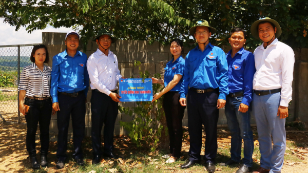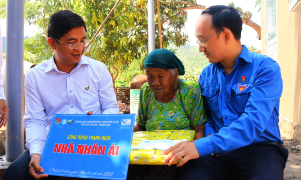 Thường trực Tỉnh Đoàn tặng quà và khánh thành công trình nhà nhân ái cho cụ bà Hờ DLiê Niê.