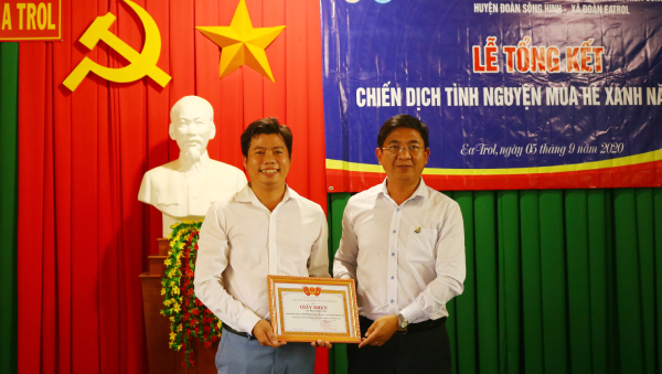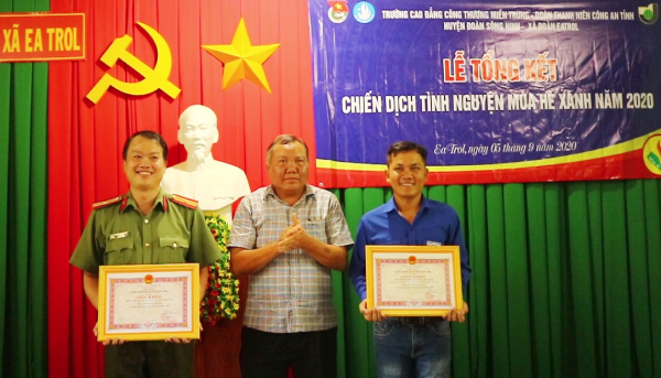 Dịp này, Đoàn - Hội Sinh viên Trường Cao đẳng Công thương Miền Trung tổ chức tổng kết Chiến dịch tình nguyện Mùa hè xanh năm 2020. UBND huyện Sông Hinh và Ban Giám hiệu Trường Cao đẳng Công thương Miền Trung tặng giấy khen và tuyên dương 02 tập thể, 02 cá nhân có thành tích xuất sắc trong chiến dịch lần này.