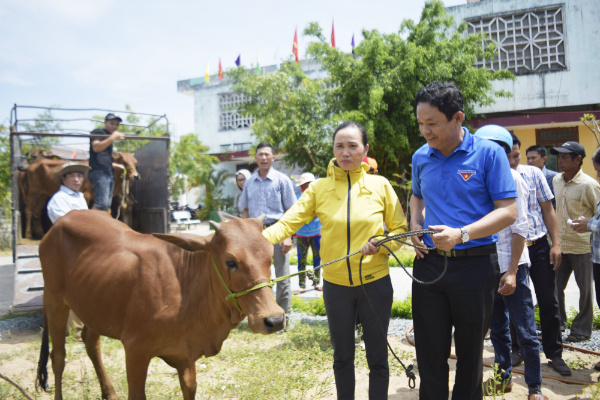 trao bò giống đến tận tay hộ gia đình có hoàn cảnh khó khăn ở huyện Tây Hòa.