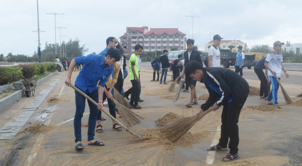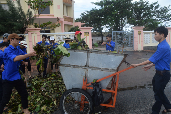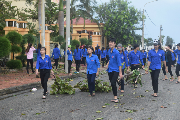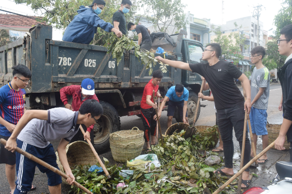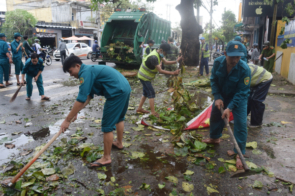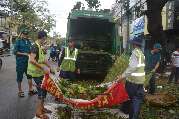 Các lực lượng tình nguyện của các đơn vị được trang bị những dụng cụ cần thiết như: rựa, chổi, cuốc, cào cỏ và một số dụng cụ khác để tham gia thu gom, xử lý các rác thải, các cành cây xanh bị ngã đổ tất cả các tuyến đường trên địa bàn Thành phố Tuy Hòa như: Độc Lập, Lê Duẫn, Nguyễn Huệ, Quảng trường ¼, Phan Lưu Thanh, Điện Biên Phủ, Nguyễn Hữu Thọ, Trường Chinh, Duy Tân…