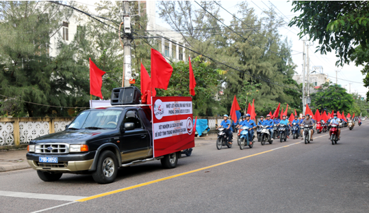 Đoàn viên, thanh niên tham gia diễu hành hưởng ứng Tháng hành động quốc gia phòng, chống HIV/AIDS .