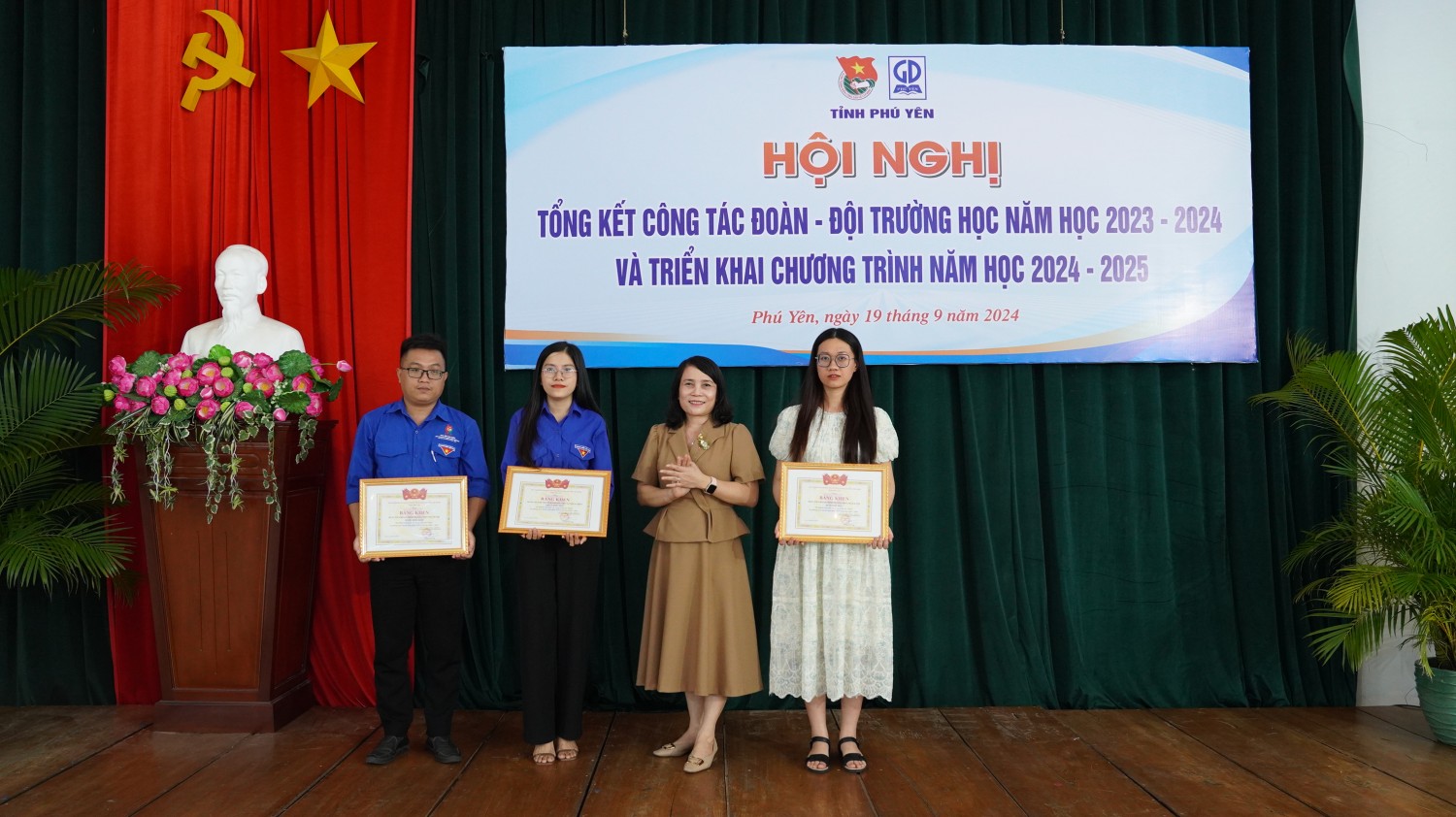 Dịp này, Ban Thường vụ Tỉnh Đoàn tặng cờ đơn vị xuất sắc công tác Đoàn và phong trào thanh niên trường học khối THPT năm học 2023 - 2024 cho 3 tập thể. Hội đồng Đội tỉnh tặng cờ đơn vị xuất sắc dẫn đầu công tác Đội và phong trào thiếu nhi năm học 2023 - 2024 cho 2 tập thể và tặng cờ đơn vị xuất sắc trong công tác Đội và phong trào thiếu nhi năm học 2023 - 2024 cho 01 tập thể. Trung ương Đoàn, Tỉnh Đoàn, Hội đồng Đội tỉnh tặng bằng khen cho nhiều tập thể, cá nhân có thành tích xuất sắc trong công tác Đoàn và phong trào thanh niên trường học khối THPT, công tác Đội và phong trào thiếu nhi năm học 2023 - 2024…