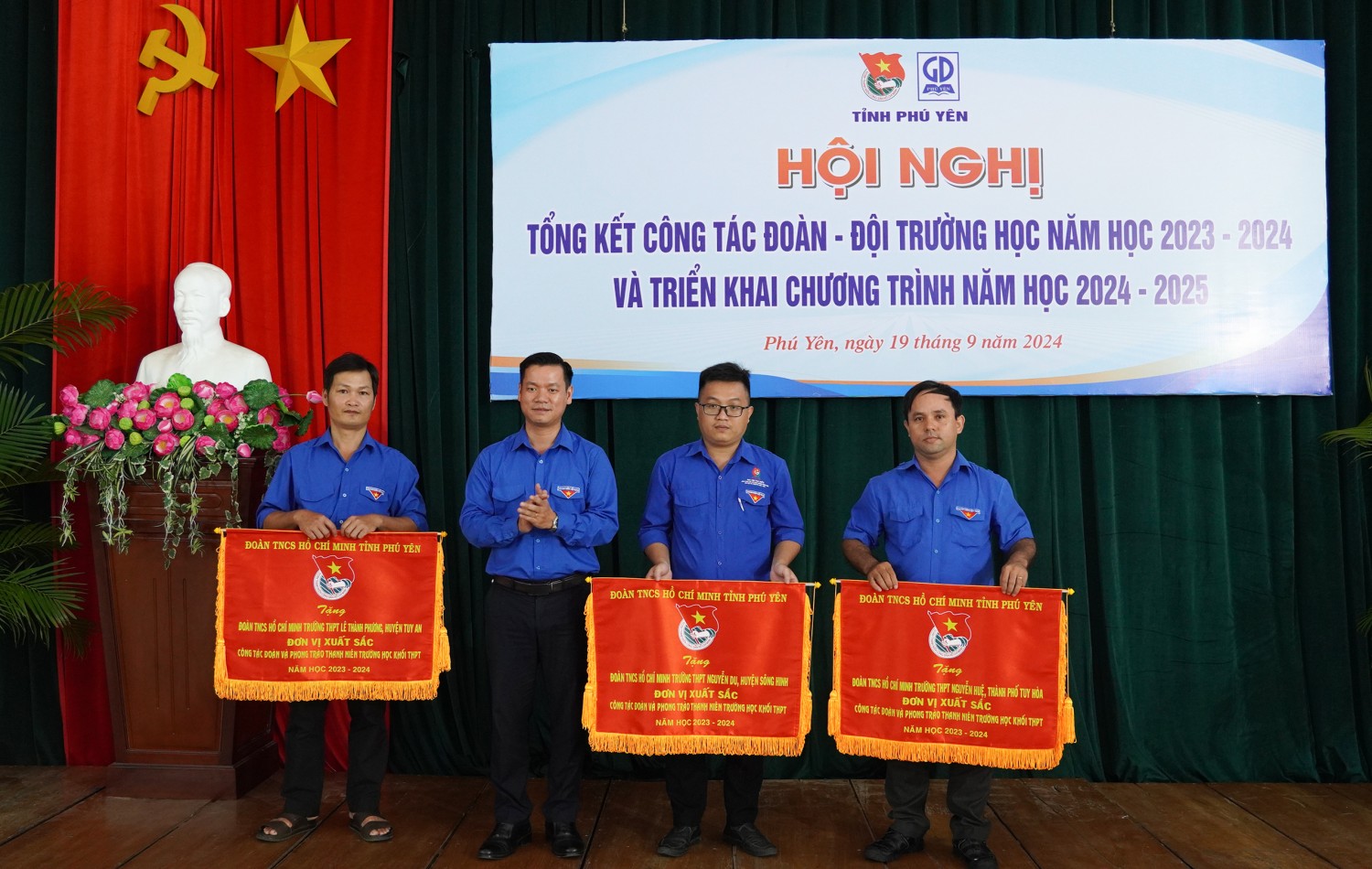 Ban Thường vụ Tỉnh Đoàn tặng cờ đơn vị xuất sắc công tác Đoàn và phong trào thanh niên trường học khối THPT năm học 2023-2024 cho 3 tập thể.