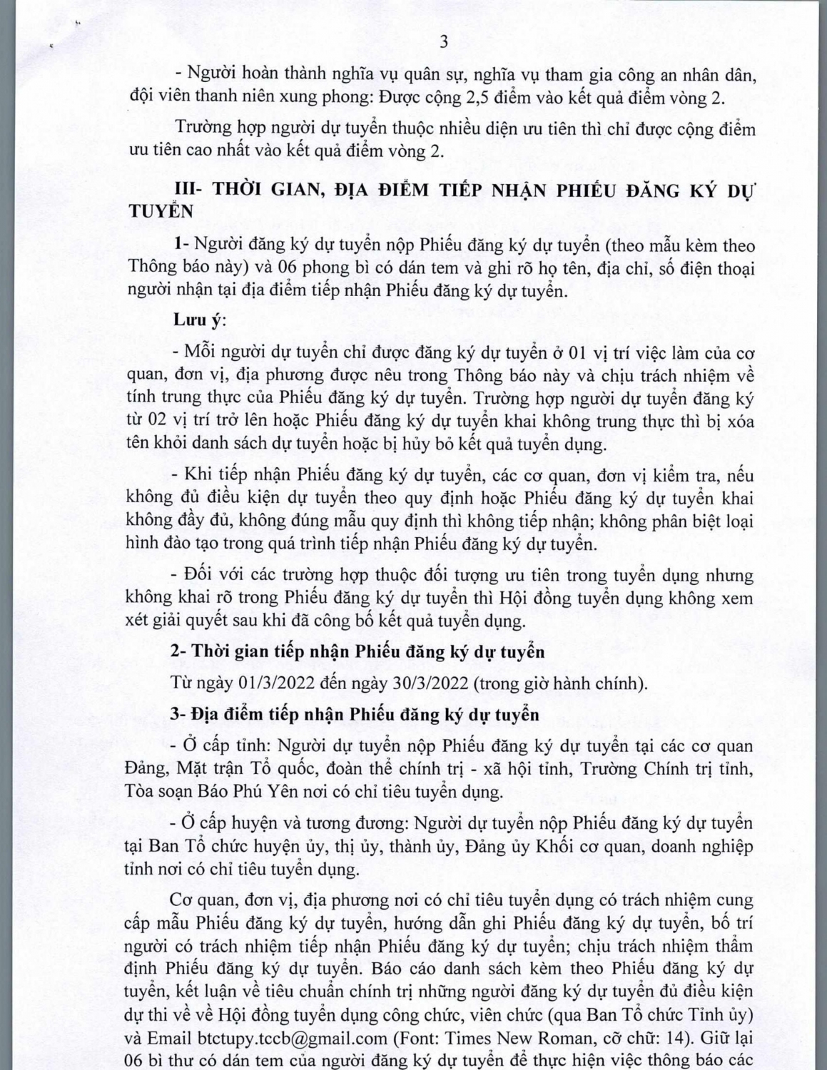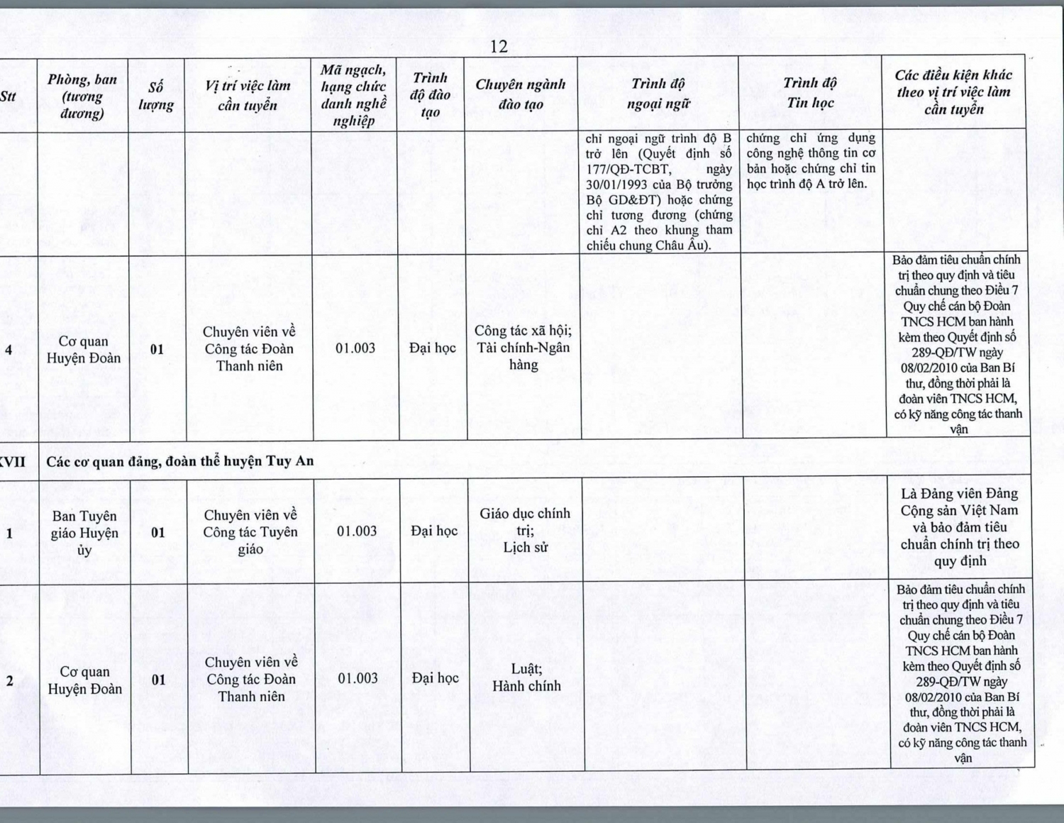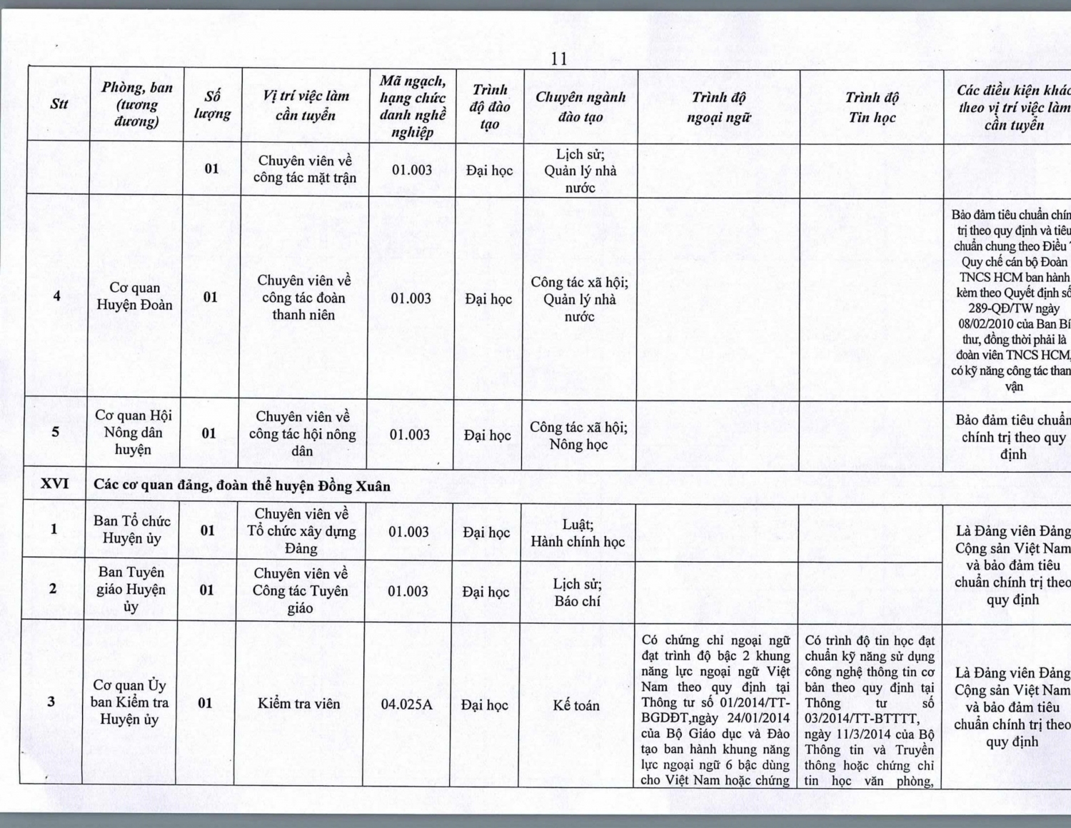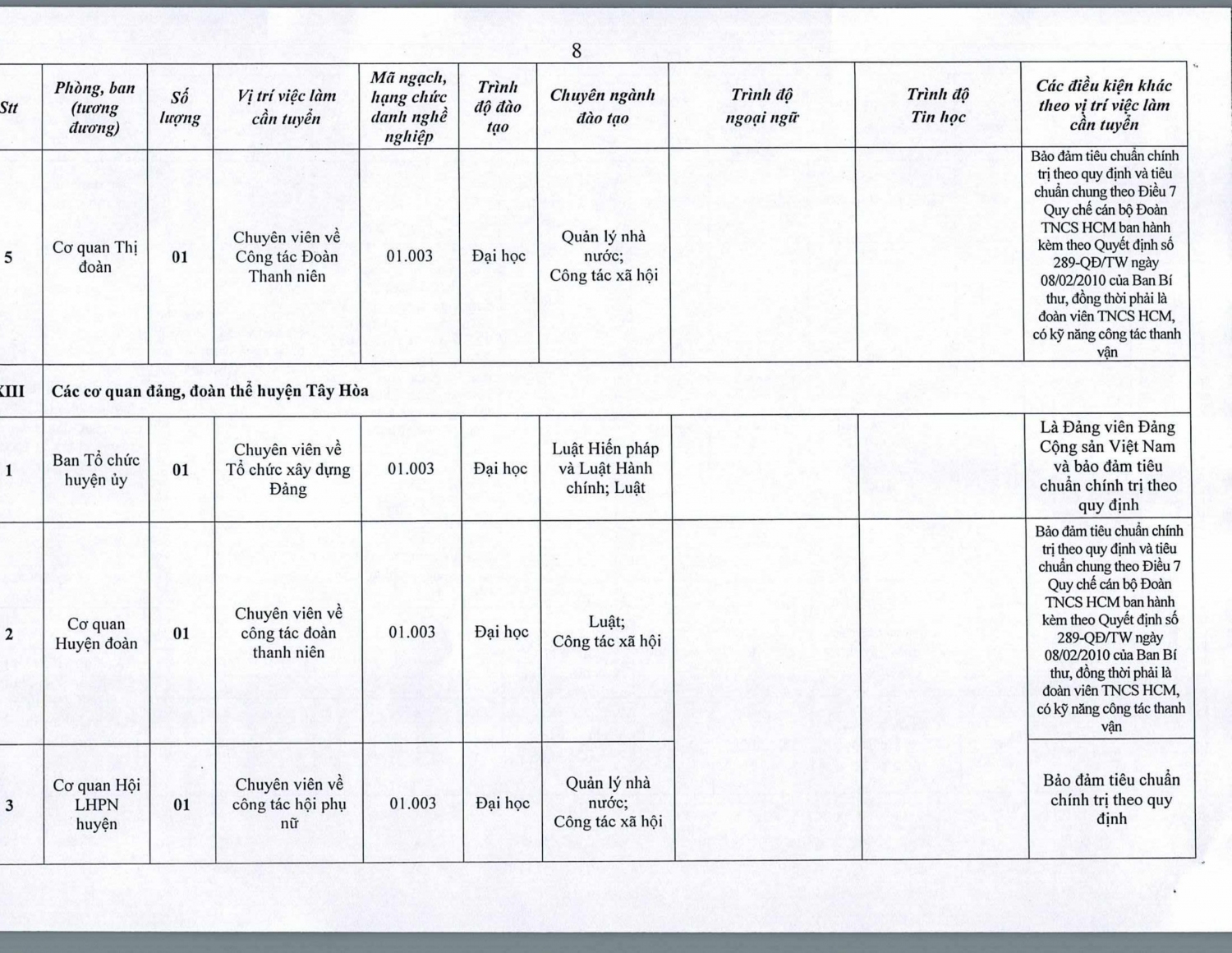 Ban Tổ chức Tỉnh ủy Phú Yên thông báo tuyển dụng công chức, viên chức các cơ quan Đảng, Mặt trận Tổ quốc, đoàn thể chính trị xã hội trong tỉnh 2021, cụ thể như sau:
