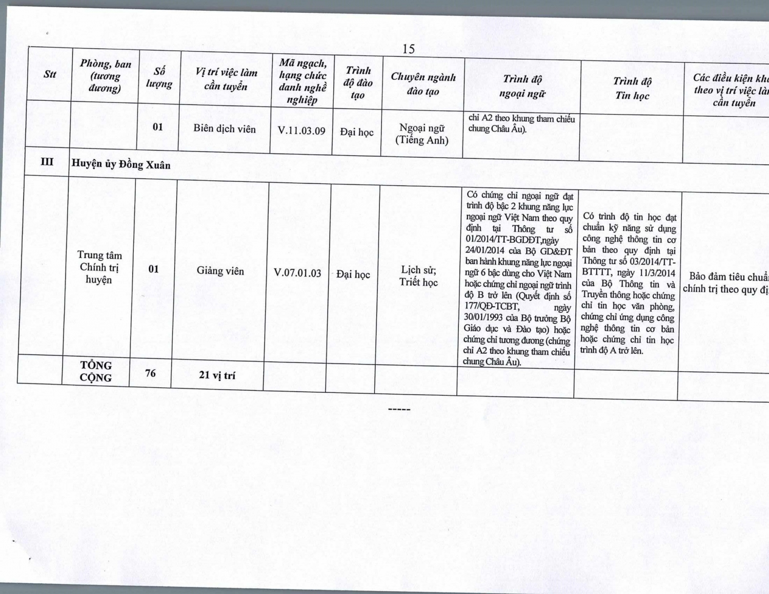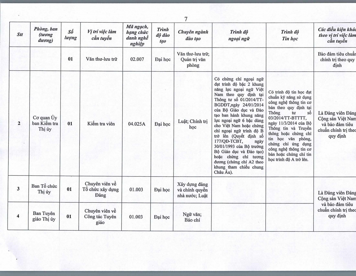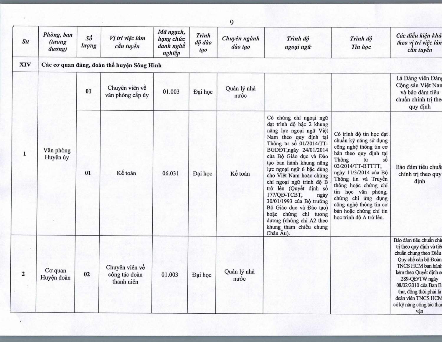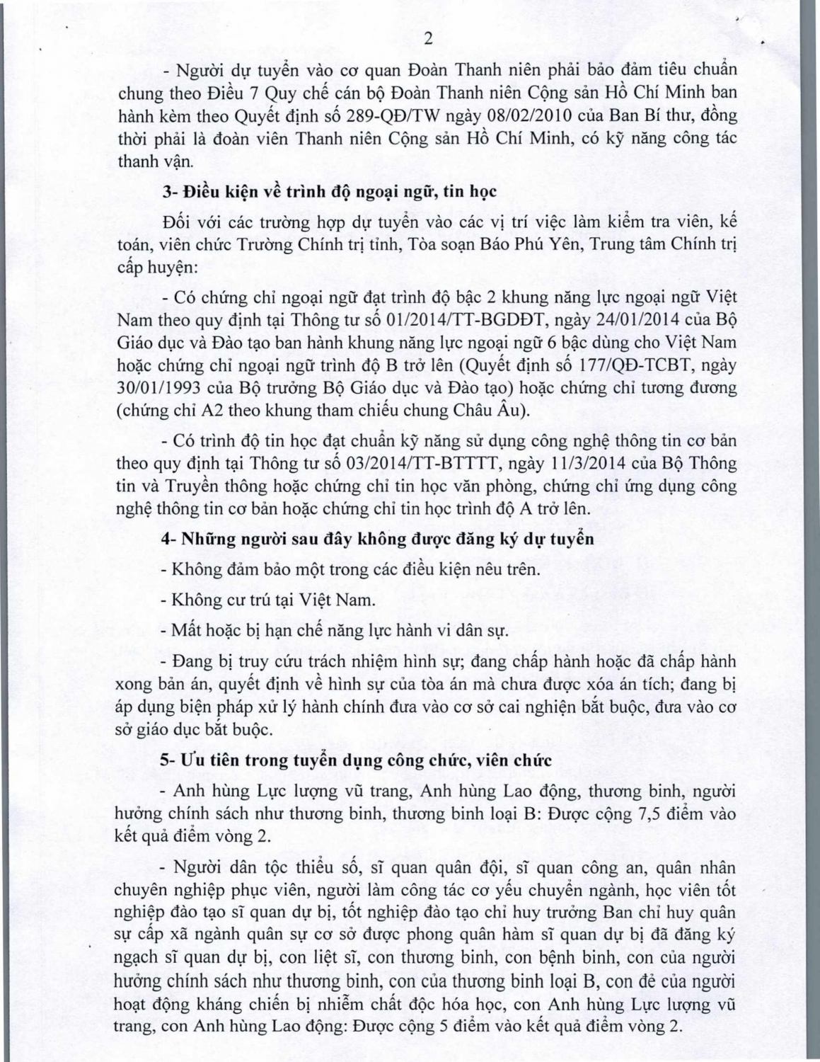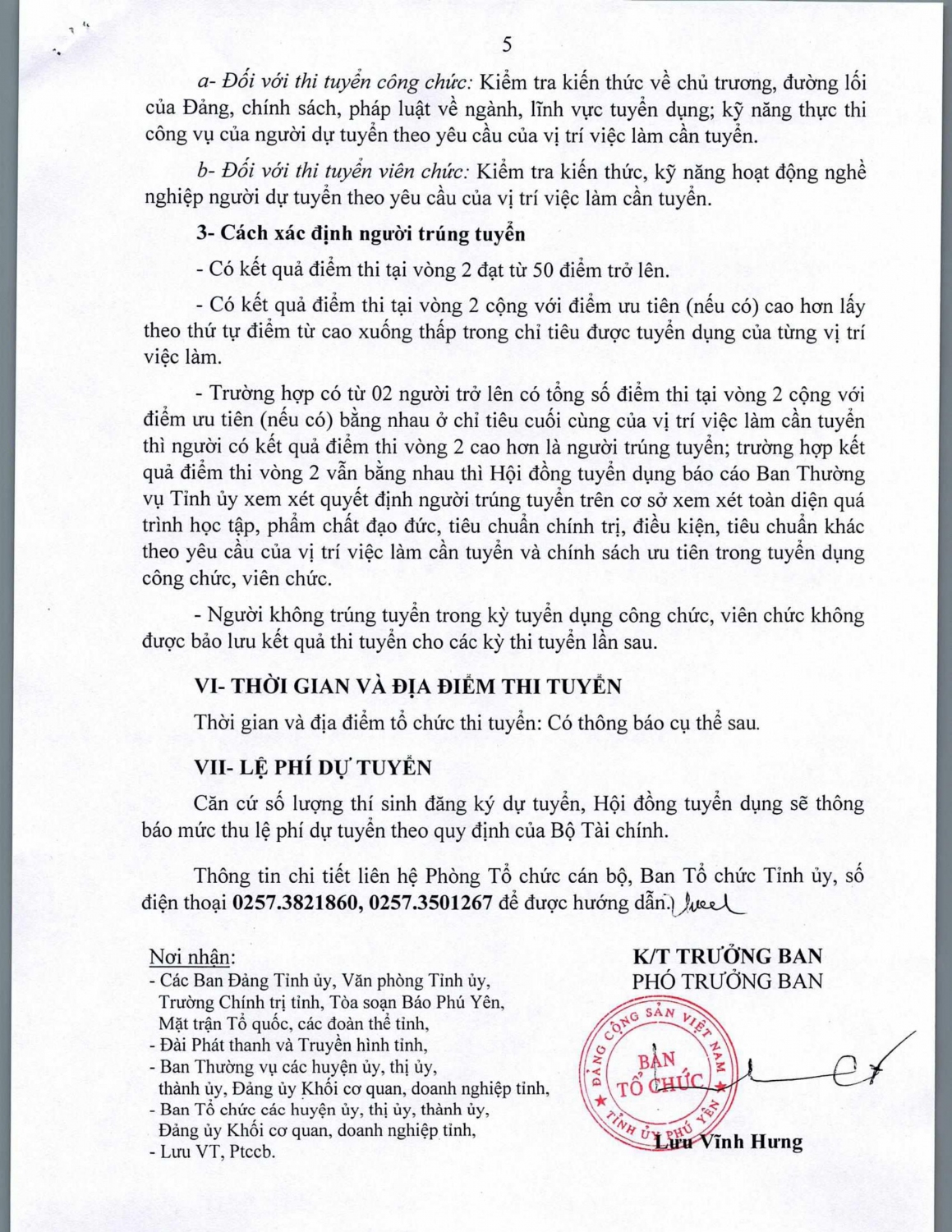 Ban Tổ chức Tỉnh ủy Phú Yên thông báo tuyển dụng công chức, viên chức các cơ quan Đảng, Mặt trận Tổ quốc, đoàn thể chính trị xã hội trong tỉnh 2021, cụ thể như sau: