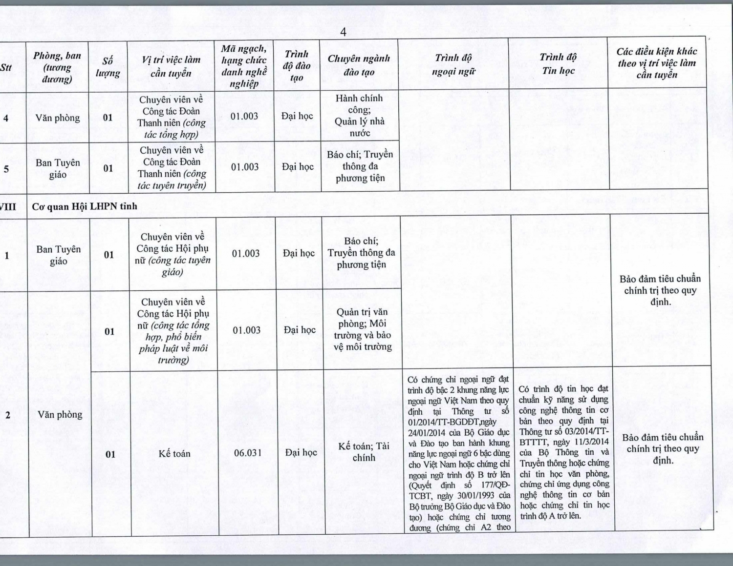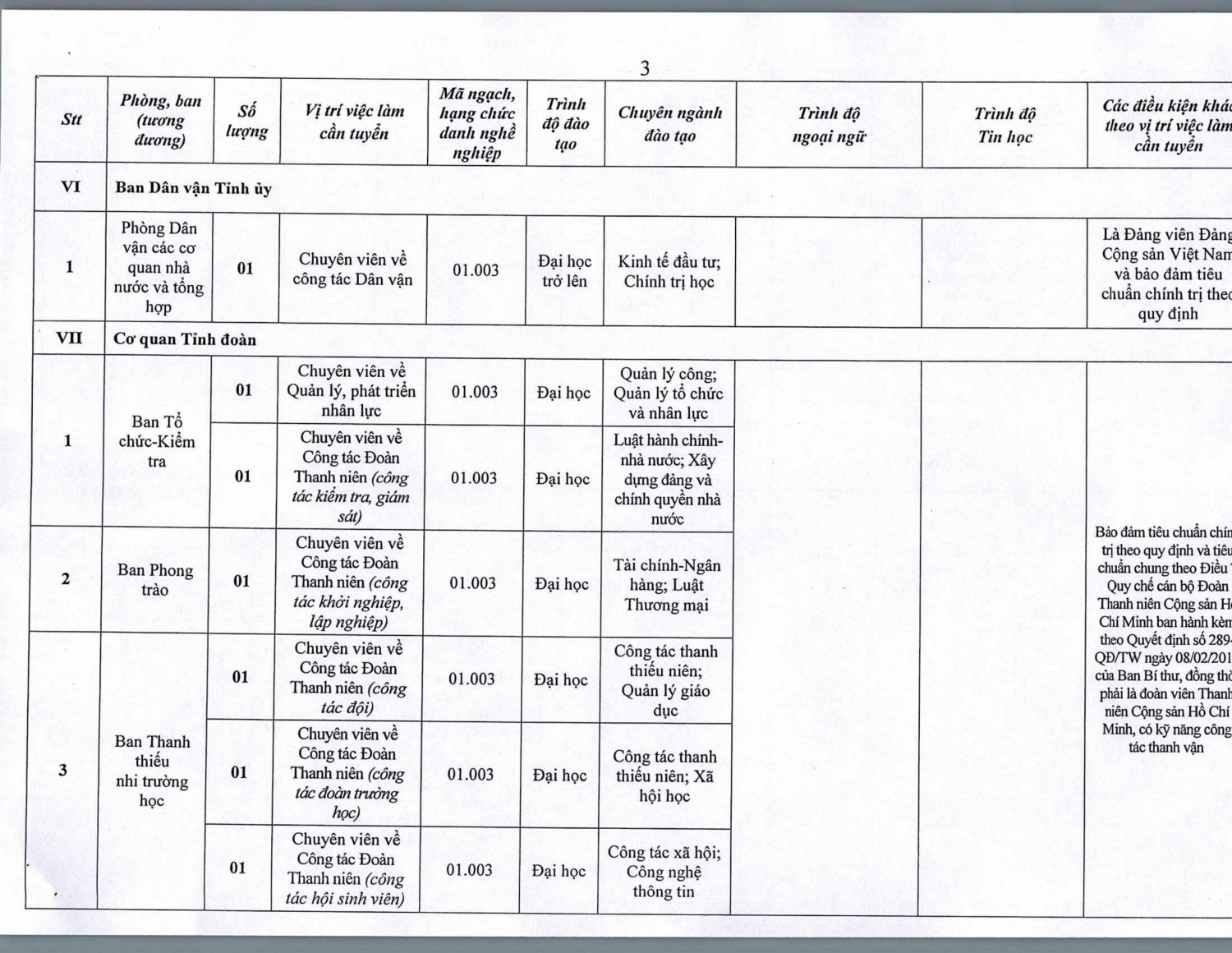 Thông báo tuyển dụng công chức, viên chức các cơ quan Đảng, Mặt trận Tổ quốc, đoàn thể chính trị xã hội trong tỉnh 2021
