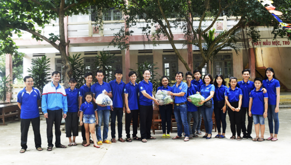 Thăm, tặng quà đội hình tình nguyện Cao đẳng Công thương Miền Trung đóng quân